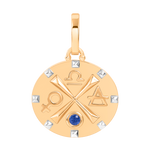 Balanced and harmonious, the Libra pendant beautifully captures the spirit of this Air sign. Handcrafted in 18k yellow and white gold, it features symbolic engravings of Libra’s ruling planet Venus, its elemental triangle, and the sign itself. A brilliant blue sapphire rests at the center, representing clarity, truth, and balance—the core values of Libra’s nature.