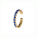 Elevate an everyday look with the refined elegance of the Blue Sapphire Row Ear Cuff. Crafted in 18K gold, this sleek and minimalist piece features a single row of perfectly aligned to create a subtle yet dazzling effect. Ideal for stacking with our other single row ear cuffs, allowing you to create a personalized and layered look.